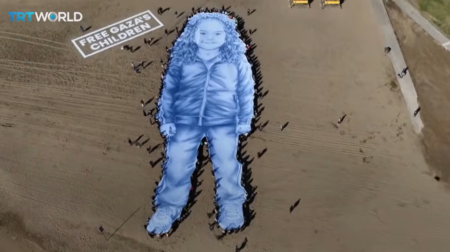 Стотици луѓе го држеа платното долго 55 метри, со ликот на девојчето, поставено покрај големо палестинско знаме. Пораката беше јасна и кратка „Слобода за децата од Газа“.