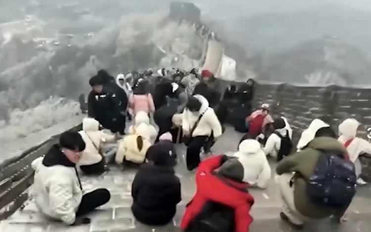 🎥 ЈАО ПАО НА КИНЕСКИОТ ЅИД Погледнете како се мачат туристите кога ѕидот се претвора во лизгалиште
