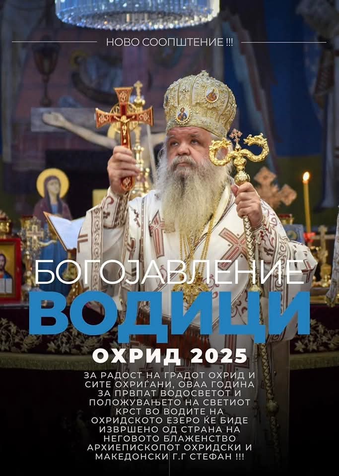 На голема радост на сите верници оваа година водите на Охридското Езеро за големиот христијански празник Богојавление – Водици, ќе ги освети и ќе го положи Светиот крст Неговото блаженство Архиепископот Охридски и Македонски г.г Стефан.