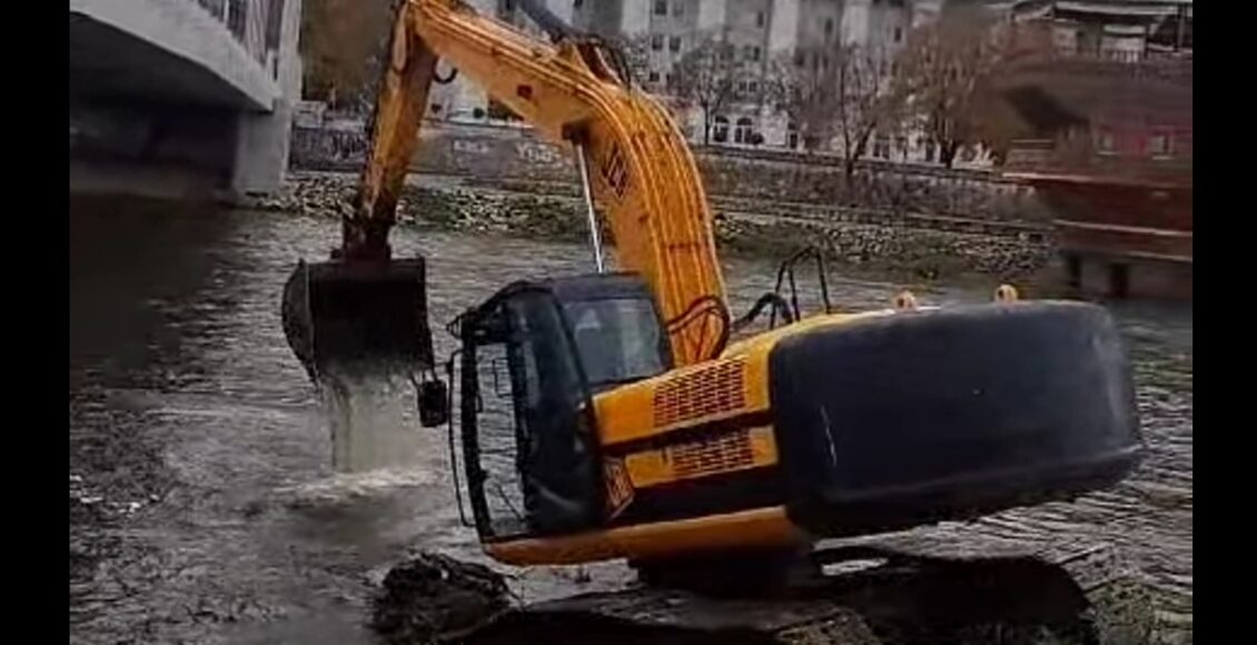 🎥 БАГЕРИ ВЛЕГОА ВО ВАРДАР Погледнете како ги чистат тињата и ѓубрето кај Камениот мост