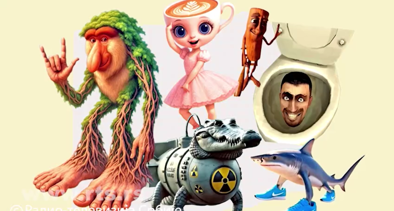 Балерина Капучина, Тралалеро Тралала, Бомбардиро Крокодило – тие се комбинација од навидум некомпатибилни работи: тело на девојка, а наместо глава, шолја кафе, плишана ајкула со три нозе во патики, авион со глава на крокодил. Околу дваесет други вакви ликови станаа омилени херои за децата низ целиот свет. Што е феноменот феноменот „брејн рота“ и како влијае на децата?