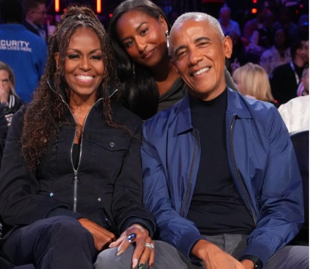 Барак и Мишел Обама имаа вечер за излегување, придружувани од ќерката Саша, на НБА Ол-стар натпреварот во Intuit Dome во Калифорнија, а поранешниот претседател на САД имаше и свој ѕвезден момент кога ја фати топката што одеше директно кон него и Мишел.