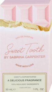 Доколку сакате подарок што е разигран и неодоливо сладок, парфемот Sabrina Carpenter Sweet Tooth Made With Love од 1399 денари носи вистинско уживање. Инспириран од класична чоколада, овој парфем комбинира маршмелоу, чоколада, кандиран ѓумбир и бергамот на почетокот, додека срцевината од ванила од Мадагаскар, кокосово млеко и јасмин создава кремаста мекост. Базата од шеќер, кашмир дрво и мошус ја заокружува композицијата со топлина и сензуалност – мирис што измамува насмевка и буди спомени.
