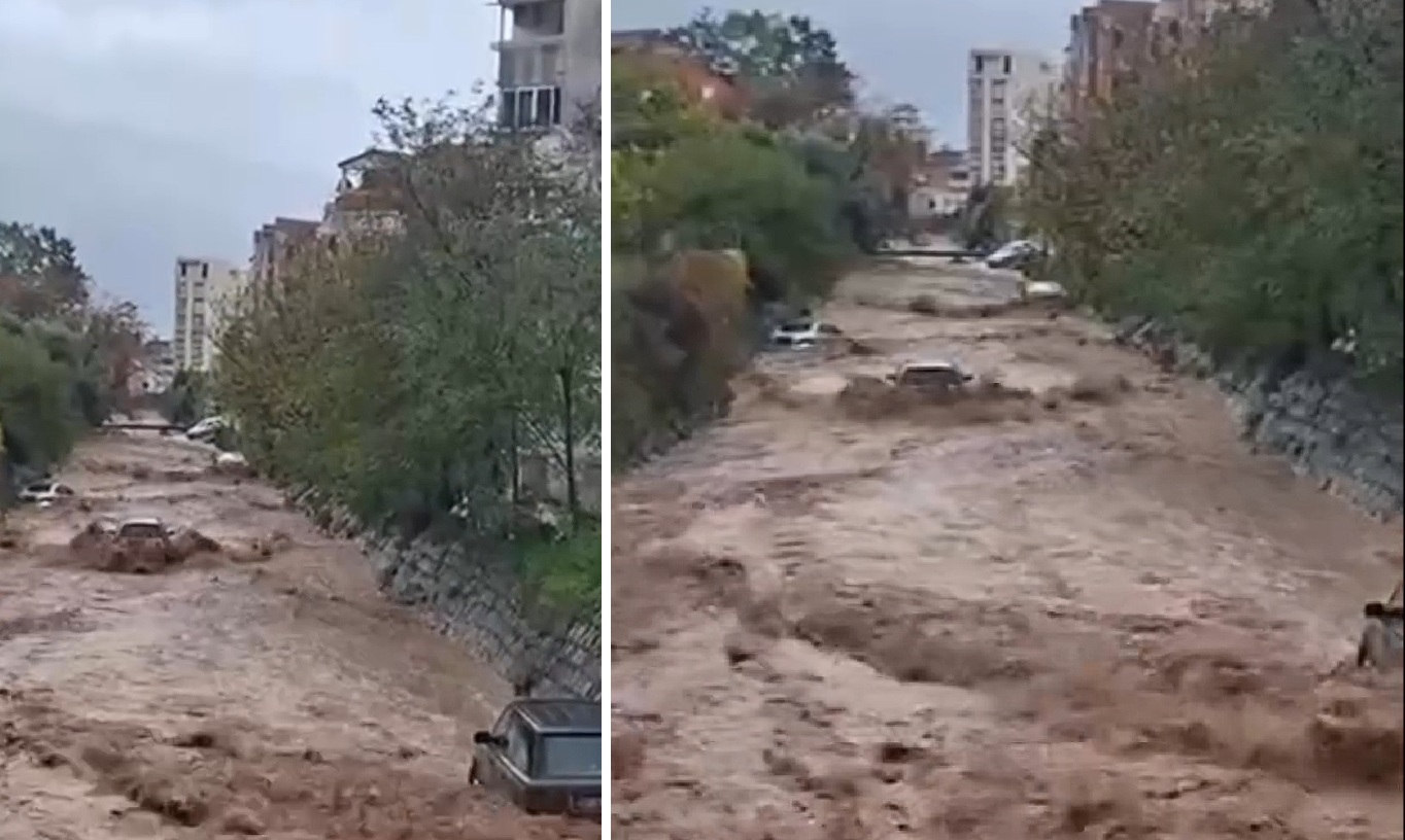 📽️ БУДВА ПОД ВОДА, СТРАВ ОД НОВИ ПОПЛАВИ Надојдената река во центарот однесе автомобили