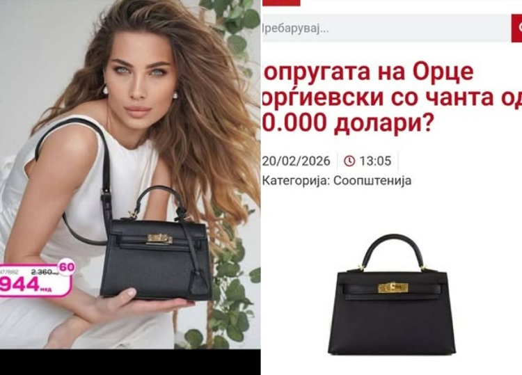 ЧАНТАТА НА СОПРУГАТА НА ОРЦЕ ЃОРЃИЕВСКИ НЕ Е ХЕРМЕС И ЧИНИ 944 ДЕНАРИ Мартина бара јавно извинување од СДСМ