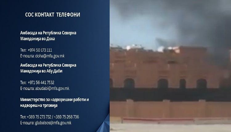 Поради актуелната безбедносна состојба на Блискиот Исток, Министерството за надворешни работи и надворешна трговија упати апел до македонските државјани кои се наоѓаат во Катар, Обединетите Арапски Емирати, Кувајт и Бахреин да бидат внимателни и редовно да ги следат официјалните информации.