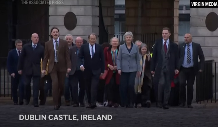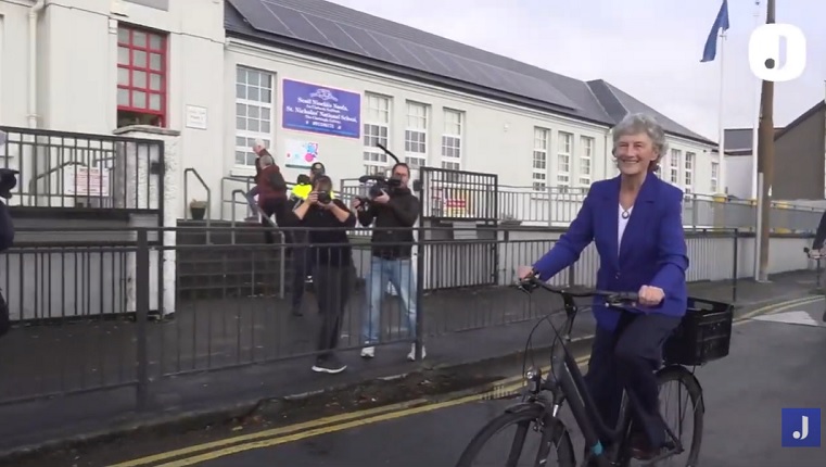 По прогласувањето на победата, камерите го снимија нејзиното влегување во Ирската претседателска Палата, заедно со соработниците: