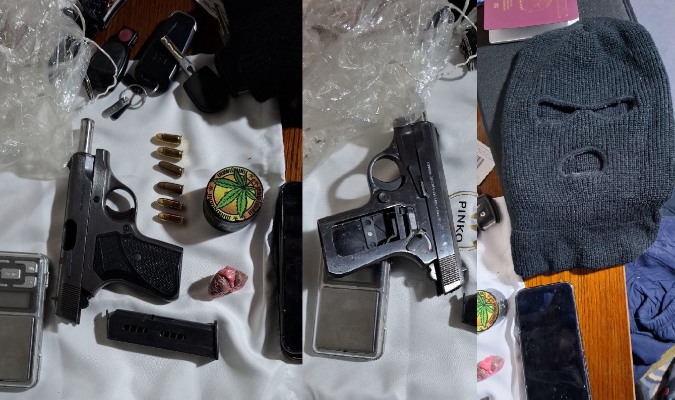 Марихуана, дигитална вага, пиштол, рамка со куршуми, пари и други предмети биле пронајдени при претрес во дом на 23-годишниот Ѓ.С. од Скопје, по што тој бил лишен од слобода од полициски службеници на СВР Скопје.
