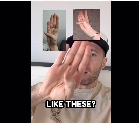 – Кренете ја раката и обидете се да го истегнете палецот колку што можете преку дланката. Дали застанува тука? Или се протега преку вашата дланка? Ако се протега, тоа е позитивен тест за палецот и дланката – вели д-р Витингтон во видео на Тик-Ток.