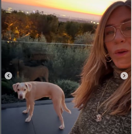 На друга фотографија, актерката се опушта со едно од своите кучиња наспроти прекрасното зајдисонце на нејзината тераса, а на една поопуштена фотографија, се гледа како Џенифер дреме со маска за очи во нејзината пријатна, малку неуредна дневна соба.