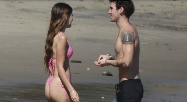 Во впечатливо розово бикини, таа ја истакна својата фигура и привлече многу погледи, а посебно внимание привлече мажот со кого разменуваше нежности и разговори. Иако нивната врска сè уште не е официјално потврдена, странските медиуми веќе шпекулираат дека станува збор за нејзиното ново момче.
