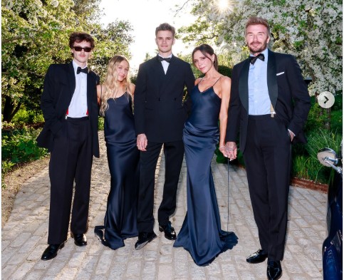 Викторија Бекам исто така ја следеше својата ќерка, избирајќи сатенски фустан, уште еднаш покажувајќи ја хармонијата и префинетиот вкус што го делат мајката и ќерката.