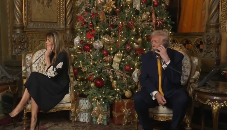 Заедно со сопругата Меланија, од нивниот имот Мар-а-Лаго, Трамп разговараше со најмладите Американци кои со возбуда прашуваа каде се наоѓа Дедо Мраз, дали ќе стигне навреме и што ќе донесе под елката.