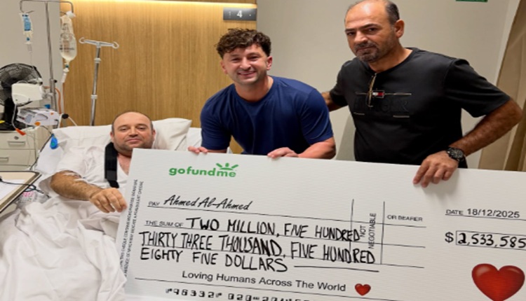 Ахмед ал Ахмед, кој беше прогласен за херој откако за време на масовното пукање на плажата Бонди во Австралија му ја грабнал пушката на еден од напаѓачите, доби чек во вредност од повеќе од 1,65 милиони американски долари, односно 2,53 милиони австралиски долари. Средствата се собрани преку донации од десетици илјади луѓе од целиот свет, јавува агенцијата Ројтерс.