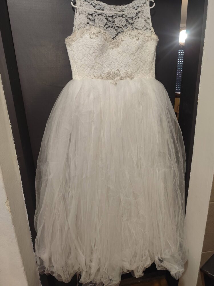 – Венчаницата е како на принцеза, со кристали одозгора и тил одоздола. Нема никакви оштетувања, единствено треба хемиско чистење. Цената е 300 евра, но може малку да се намали – рече таа, а потоа објасни зошто продажбата на венчаницата ѝ била важна.