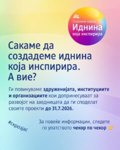 Доколку имате иницијатива што може да придонесе за подобро утре, пријавете ја на платформата „Иднина која инспирира“ на следниот линк до 31 јули 2026 година и дозволете вашата идеја да добие шанса да инспирира, поврзе и промени.