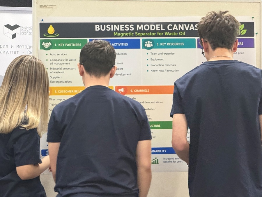 Најдобрите 20 од 42 средношколски тимови кои аплицираа за Националниот натпревар за најдобар бизнис концепт за зелени иновации за средните училишта 2026/2027 денеска се натпреваруваа во полуфиналето кое се одржа на Машинскиот факултет во Скопје.