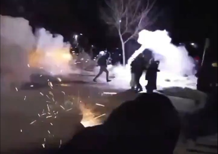 Улиците на Минеаполис беа исполнети со чад синоќа на местото на најновиот инцидент, а федералните полицајци носејќи гас-маски и шлемови испукаа солзавец кон мала група луѓе додека демонстрантите фрлаа камења и запалија огномет.