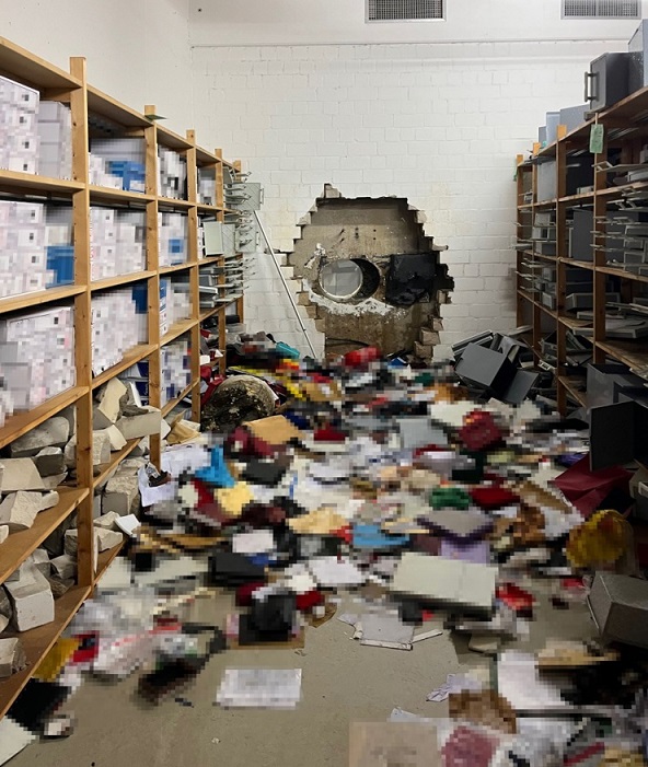 Грабежот се случил минатиот викенд, а крадците влегле во банката преку подземна гаража и користеле специјална дупчалка за да го пробијат дебелиот армиран бетонски ѕид до трезорот, каде што скршиле околу 95 проценти од вкупно 3.250 сефови.