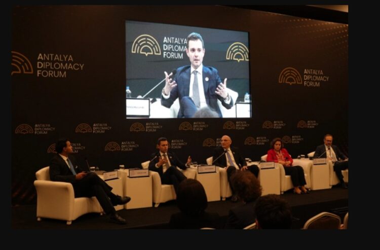 ИЗГРАДБАТА НА КОРИДОРОТ 8 И ЖЕЛЕЗНИЦАТА ДО БУГАРИЈА СЕ ПРИОРИТЕТ Муцунски учествува на Дипломатскиот форум во Анталија