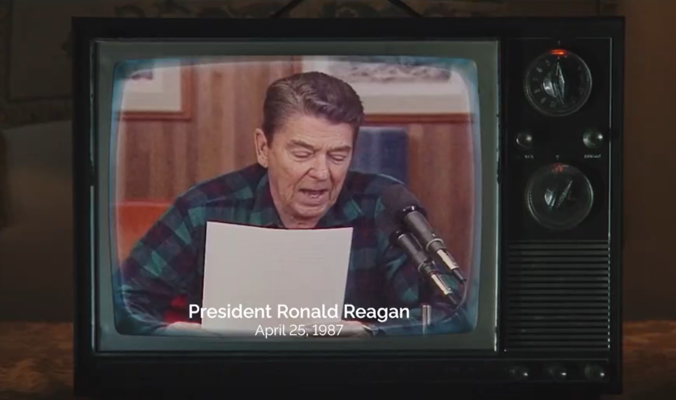 Во видеото, Реган зборува против царините, но според Фондацијата Роналд Реган, неговите зборови биле „искривени и изменети без дозвола“.