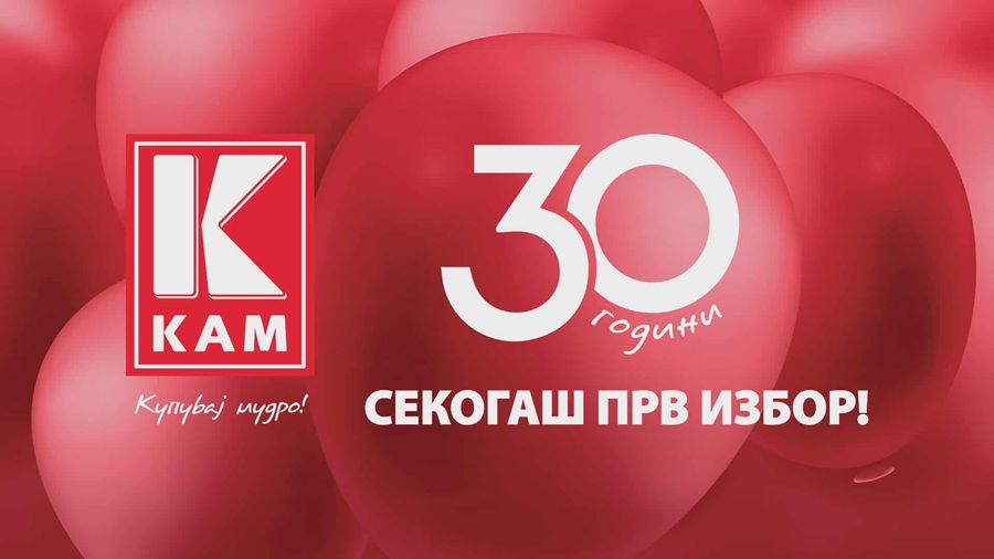 КАМ, македонскиот број еден, годинава одбележува три децении јубилеј и влегува во ново поглавје од својата успешна македонска приказна заснована на квалитет и доверба. Пионер во многу сегменти во полето на малопродажбата, компанијата е позната по грижата за секој потрошувач и по тоа што ги донесе ниските цени на пазарот.