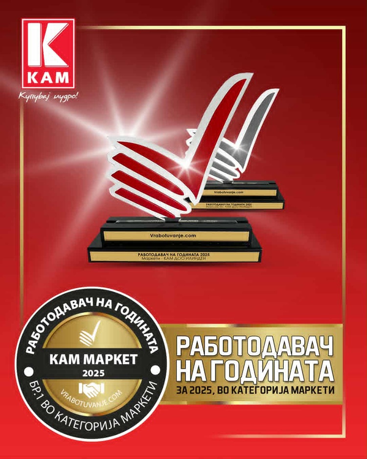 – Особено значајно е признанието „Работодавач на годината“ во категоријата маркети, кое уште еднаш ја потврдува позицијата на КАМ како еден од најпосакуваните работодавачи во малопродажниот сектор. Фактот што оваа награда ја добиваме по трет пат претставува дополнителна потврда за доследноста во градењето организациска култура заснована на доверба, одговорност, развој и грижа за вработените. Второто место во апсолутната категорија помеѓу сите компании во земјата ја позиционира компанијата и пошироко – меѓу најценетите работодавачи во земјава – велат од КАМ.