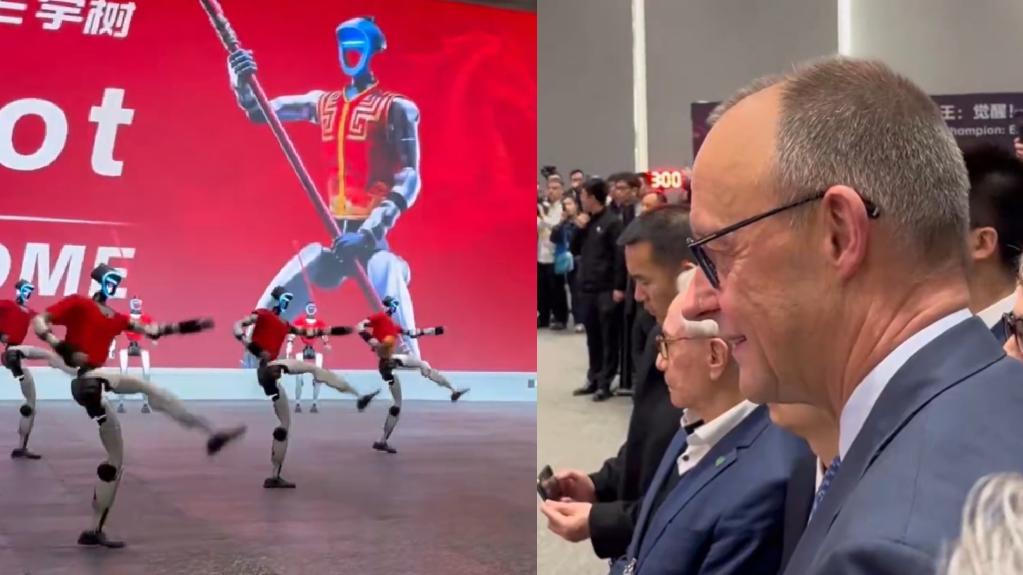 Камерите го фатија моментот кога германскиот канцелар љубопитно го следи настапот на десетици кинески хуманоидни роботи во Пекинг. Кинеските роботи кои можат беспрекорно во група да вежбаат кунг-фу, да прават салто и да се мечуваат го задржаа вниманието на светската јавност.