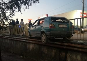 Според фотографија од МИА, второто возило ја пробило оградата од мост и за малку ќе завршело во дупка.