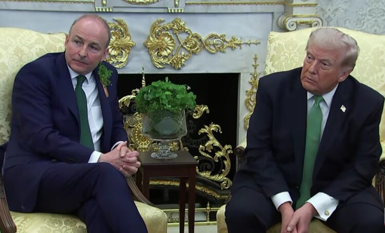 Средбата во Овалната соба, која траеше 40 минути, се одржа во сенка на критиките од ирската претседателка Кетрин Коноли за американско-израелските напади врз Иран. Трамп одговори дека светот треба да биде „благодарен“ за интервенцијата, тврдејќи дека без неа Блискиот Исток би се соочил со нуклеарна војна која би ја погодила и Европа.