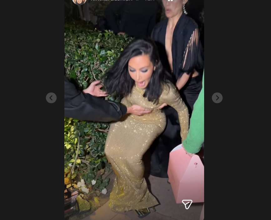 Риалити ѕвездата Ким Кардашијан сподели на својот профил на Инстаграм видео од незгоден момент што ѝ се случил непосредно пред да замине на забавата на „Венити фер“ за Оскарите.