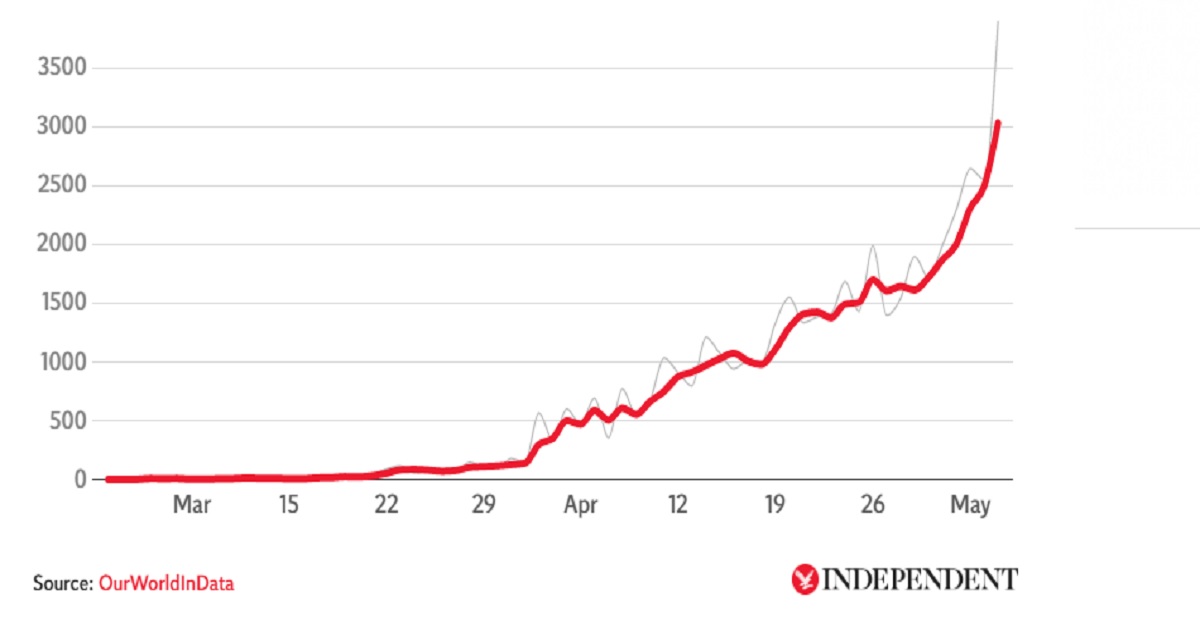 Некои земји можеби сè уште не го достигнале својот врв, Индија бележи удвојување на новите дневни случаи помеѓу 1 и 5 мај.