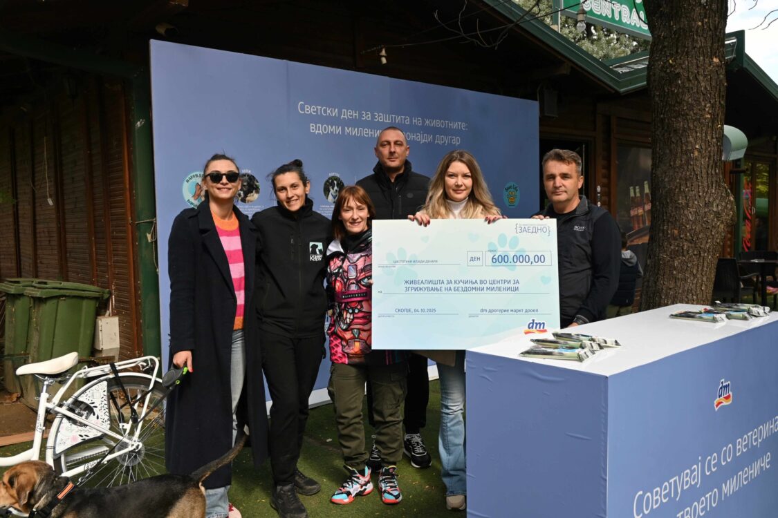 Компанијата dm drogerie markt со донација на живеалишта за миленици од 600.000 денари го одбележа Светскиот ден на животните. Беше организирана и акција за вдомување на кучињата кои во моментов се згрижени во прифатилишта на Шепасти Ентузијасти, Кане Корзо, Хепи шелтер и Спаси Живот.