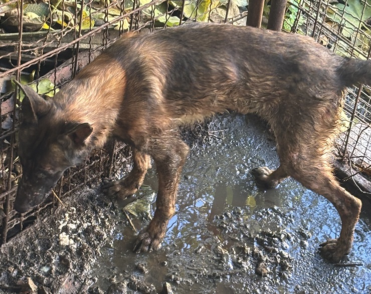 Согласно сведоштвата на соседите и поднесените докази, повеќе од две години кучето било чувано затворено во мал бокс, без пристап до питка вода, со нерасчистен измет и хрането исклучиво со сув леб. Поради ваквите услови, животното е најдено во тешка и загрижувачка состојба – екстремно изгладнето, занемарено и деформирано до степен едвај да стои на нозе.