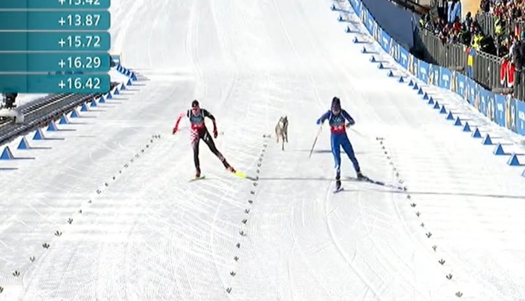 Инцидентот се случи за време на квалификациите во женскиот тимски крос-кантри во Тесеро, кога куче налик на волк се појави на патеката и почна да трча покрај, па дури и да брка некои од натпреварувачките додека тие се бореа за пласман.