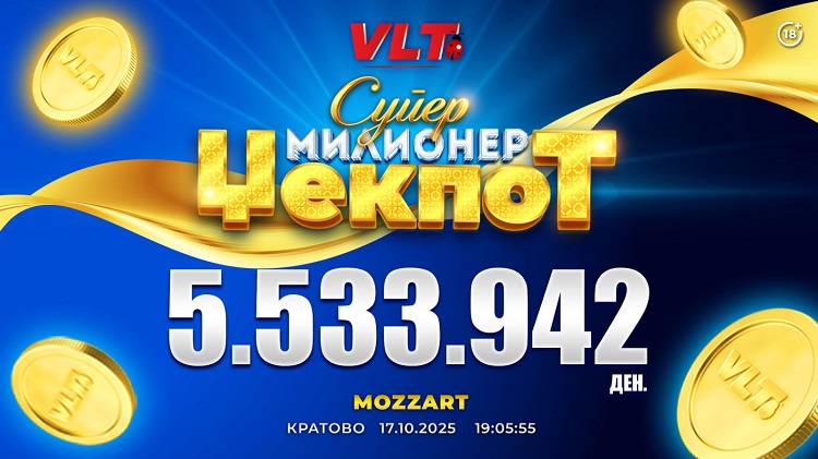 Г.П. од Куманово на 17.10.2025, на видеолотариските терминали во „Делта бет Моцарт“ ја освои најпосакуваната ВЛТ добивка. Неговата среќна игра е „40 лаки кингс“, а добивката што ја освои изнесува 5.533.942 денари.