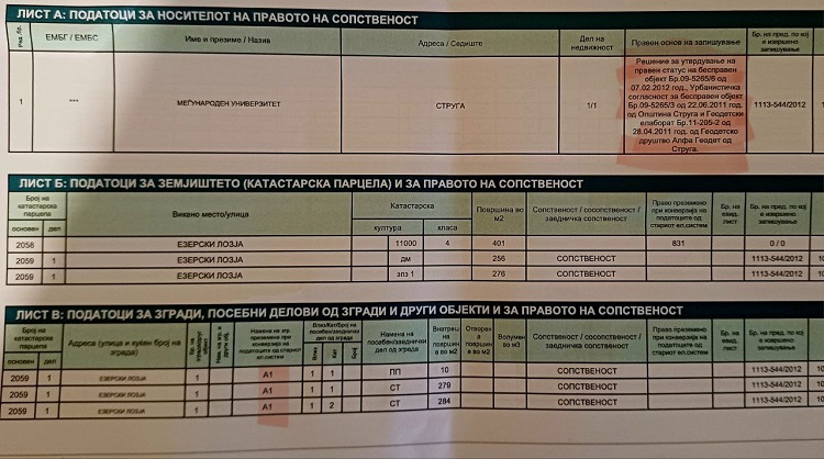 Левица ги повикува надлежните институции да ги испитаат сомнежите дали овој универзитет впрочем е легализирана дивоградба како „семејна куќа“, како и да се провери дали оваа образовна установа има одобрен ПП елаборат, одобрена техничка документација и дали постои одобрен проект за образование со потребните елаборати и согласности.