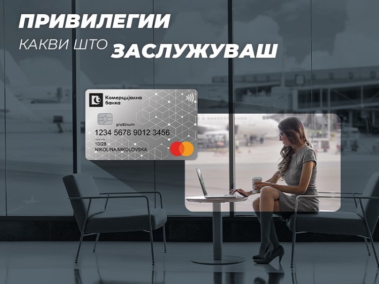 Уникатната кредитна картичка Mastercard Platinum на Комерцијална банка ги комбинира луксузот, флексибилноста и премиум удобностите за беспрекорно искуство. Во светот на кредитните картички, Platinum кредитната картичка значи да се има луксуз на дофат на раката. Оваа картичка е дизајнирана за да задоволи премиум барања и да обезбеди ексклузивни искуства низ целиот свет.