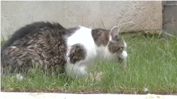 Мачорот Лари докажа дека тој е оној со канџите на Даунинг стрит 10, кога беше снимен како фаќа глушец пред телевизиските камери.