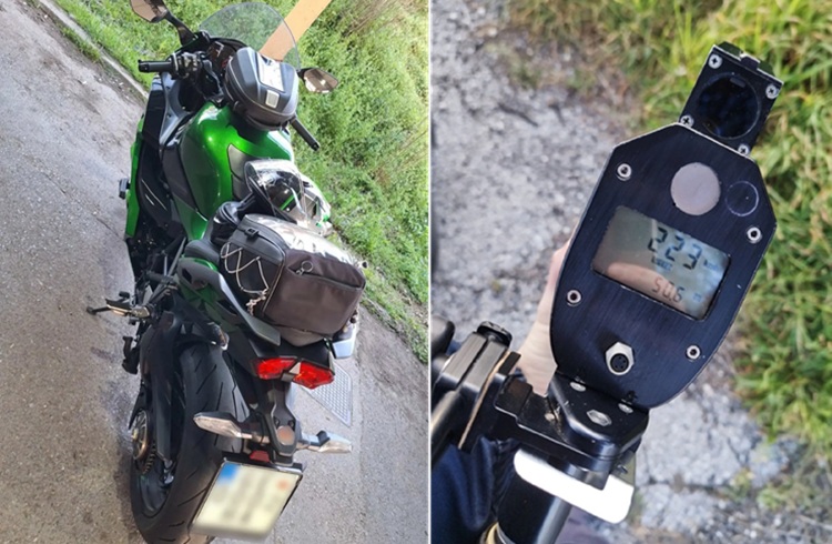 Грчката полиција објави на социјалните мрежи фотографии од радарот што ја регистрирал брзината и од мотоциклот на уапсениот.
