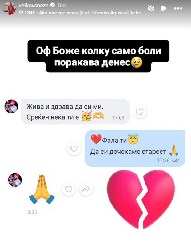 Никогаш нема да те заборавам, и ветувам ќе ја носам љубовта во мене како што само ти ме учеше. Фала ти за се, и се гледаме на друго место. Почивај во мир, ќе ми фалиш… 💔“, напиша Таско.