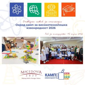 Повеќе за Кампот, начинот на аплицирање и потребна документација: https://macedonia2025.com/open-call-for-scholarships-for-the-ohrid-hi-tech-excellence-camp-2026/