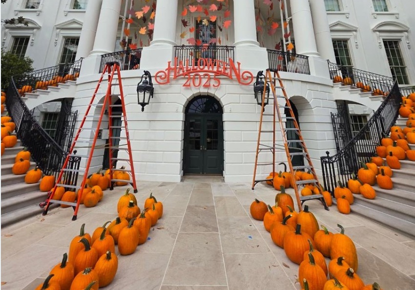 Тикви и други есенски декорации ја внесоа Белата куќа во духот на празниците. Среде контроверзноста околу обемните градежни проекти на Белата куќа, Меланија се подготви за претстојната празнична прослава што ќе се одржи на само неколку чекори од срушеното Источно крило.