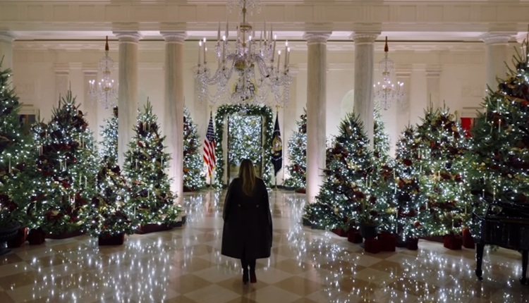 Како што наведува „NEXTA“, Меланија Трамп петти пат лично ја декорира резиденцијата, при што се користени: 25.000 стапки лента, над 2.000 светлечки жици, повеќе од 55 фигури од меденки, над 2.800 златни ѕвезди, повеќе од 10.000 сини пеперутки и над 700 стапки венец.