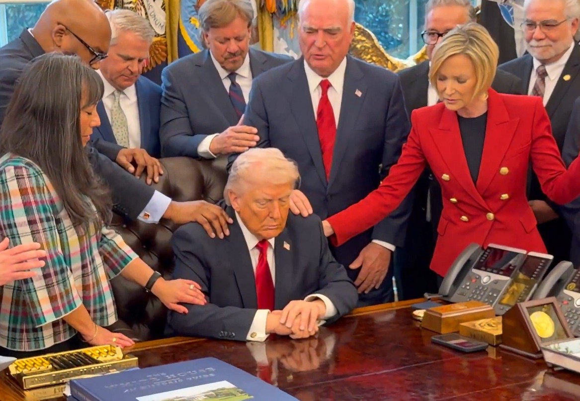 Очите на социјалните мрежи се вперени кон снимка од Овалната соба. Американскиот претседател ја задржа традицијата да покани дваесетина верски водачи на заедничка молитва за нацијата. Средбата кулминираше со собирање околу претседателот, а некои од водачите ги ставија своите раце врз него. Молитвата ја предводеше пасторот Тим Мулинс кој побара божја милост, заштита на претседателот и мудрост „од горе“, како и заштита на американските војници.