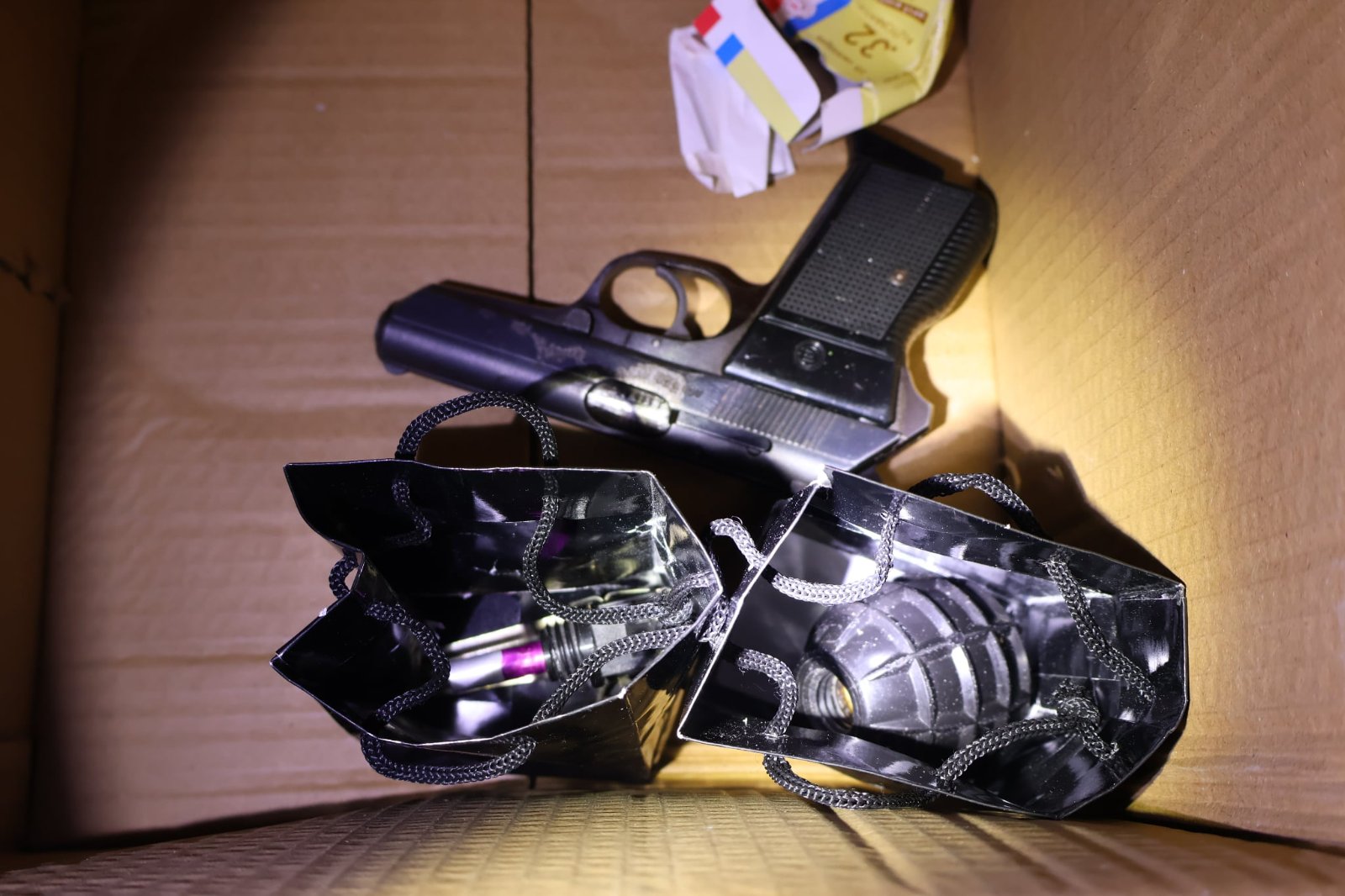 Како што се вели во соопштението, при претресот спроведен на 31 октомври 2025 година со судска наредба, полицијата пронашла и одзела 1.357 парчиња муниција од различен калибар, 488 стебла од растението канабис, сандак со куршуми калибар 7,62 милиметри, два стари револвери, пиштол „Взор“ калибар 7,65 милиметри, две автоматски пушки, тромблонски држач, тело и иницијална каписла од рачна бомба, како и пакување со црна грутчеста материја, ќеса со кафеава прашкаста материја и други предмети поврзани со незаконската активност.