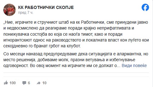 „Ние не бараме привилегии, бараме основни услови за работа и почит. Секое понатамошно игнорирање ќе значи директно уништување на спортскиот интегритет на клубот“, порачаа играчите и тренерите.