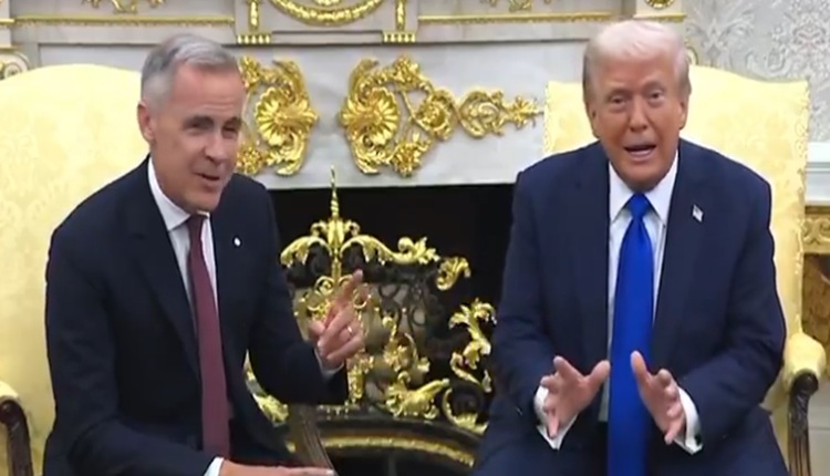 Карни почна да кажува: „…и најважното нешто…“, на што Трамп го прекина велејќи: „спојување на Канада и Соединетите Американски Држави“, што предизвика смеа во просторијата, пренесе „NBC News“.