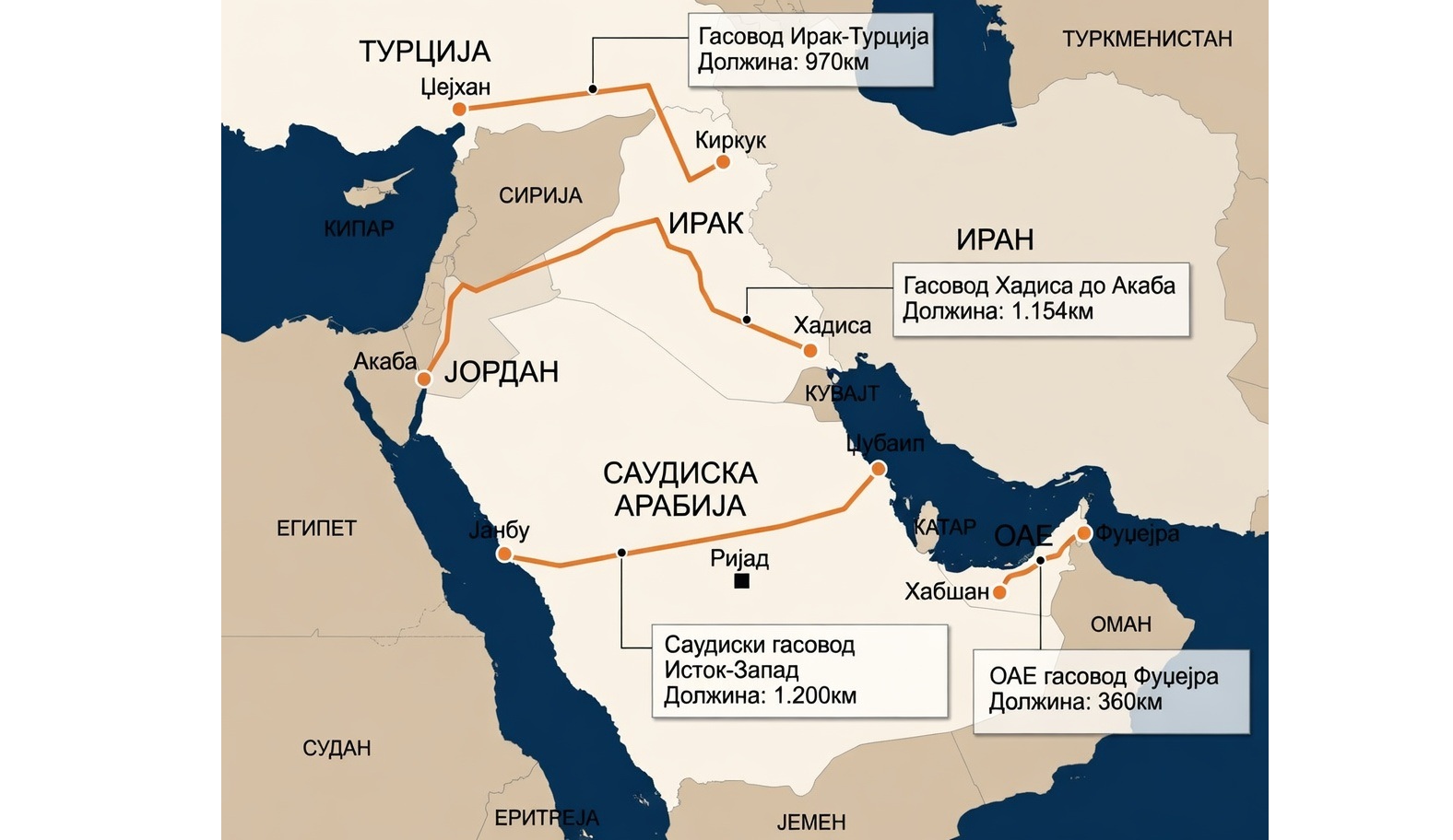 Арапските земји од Персискиот Залив разгледуваат нови решенија за да го заобиколат Ормускиот теснец поради постојаните напади од Иран. Заканата од иранска контрола ги турка земјите кон скапи, но стратешки проекти за извоз на нафта и гас по копнен пат.