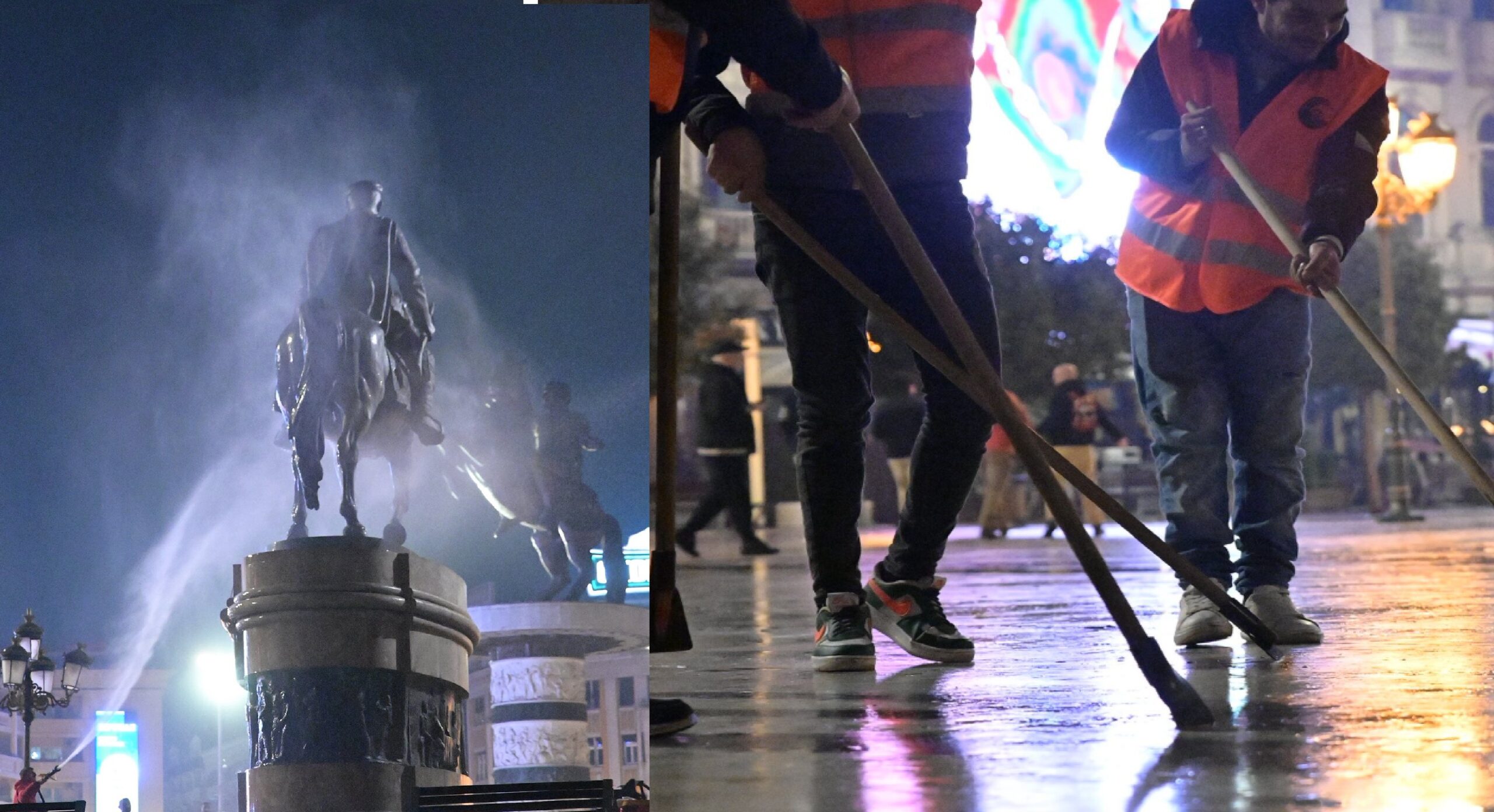 📽️ НАШЕТО УБАВО СКОПЈЕ, ЧИСТО И ДОСТОИНСТВЕНО Ѓорѓиевски објави фотки од синоќешнoто чистење на плоштадот и на кејот